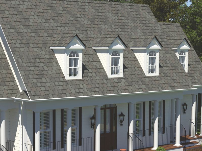 Американская однослойная ламинированная гибкая черепица от компании CertainTeed из коллекции Belmont, относится к классу "люкс". Применяется на скатных кровлях с углом наклона от 9,5° до 90°. Имеет малый вес, который не утяжеляет конструкцию крыши и способствуя быстрому, качественному и удобному монтажу (особенно при укладки в ендовы и на различные примыкания). Дизайнеры компании применили в этой модели очень необычное и сложное решение в посылке и выделение цветовых акцентов, за счет чего достигли потрясающего визуального 3D эффекта, как у трехслойной черепицы.