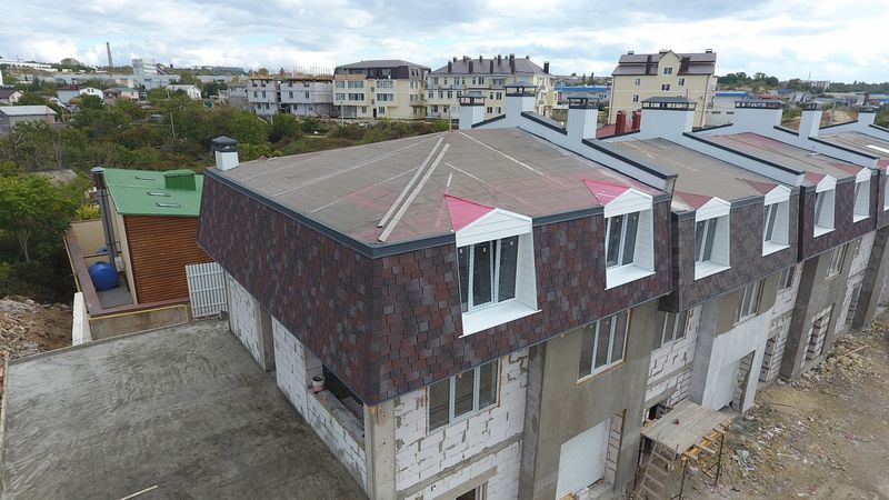 Оригинальный переход от светло-серых ккрасно-коричневым оттенкам смотрится эффектно и при этом очень естественно. Расположение и форма лепестков подчеркивают красоту цвета. Черепица одинаково гармонично смотрится с однотонными и комбинированными фасадами.