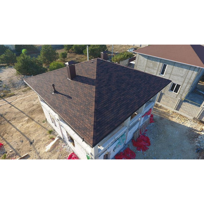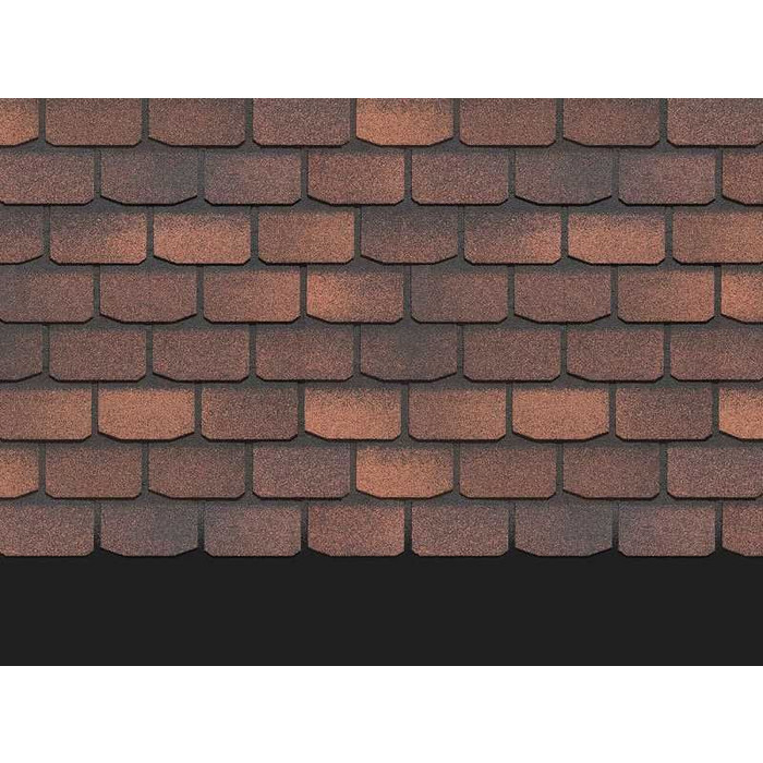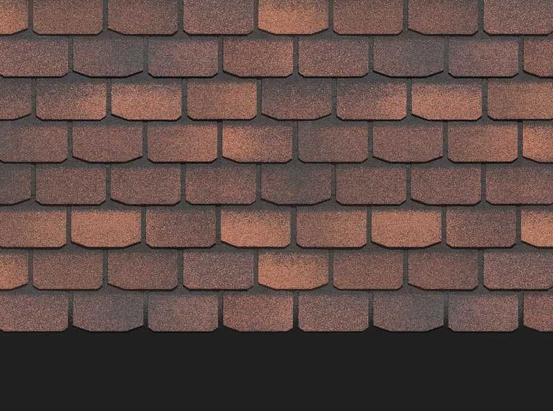 Игра цвета и трехмерный эффект привлекают внимание. Лепестки гонтов лаконичной формы дополняют дизайн. Черепица эффектно смотрится с фасадами в бежевых и карамельных оттенках. Она хорошо сочетается с фасадными панелями под камень и кирпичную кладку.