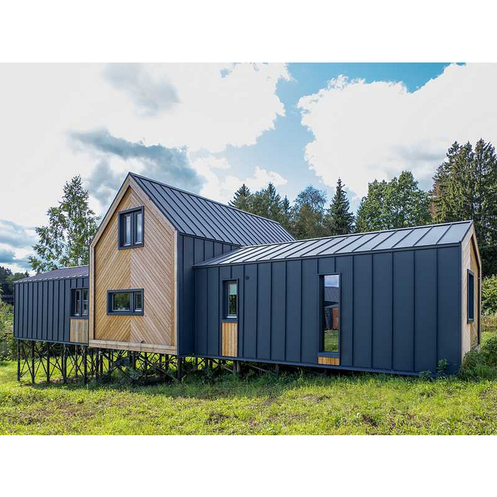 Кликфальц это также и стильные и современные фасадные панели для зданий в стиле Hi-tech, Минимализм, Скандинавия. Широкий выбор покрытий и цветовых решений позволит реализовать самые смелые дизайнерские решения.