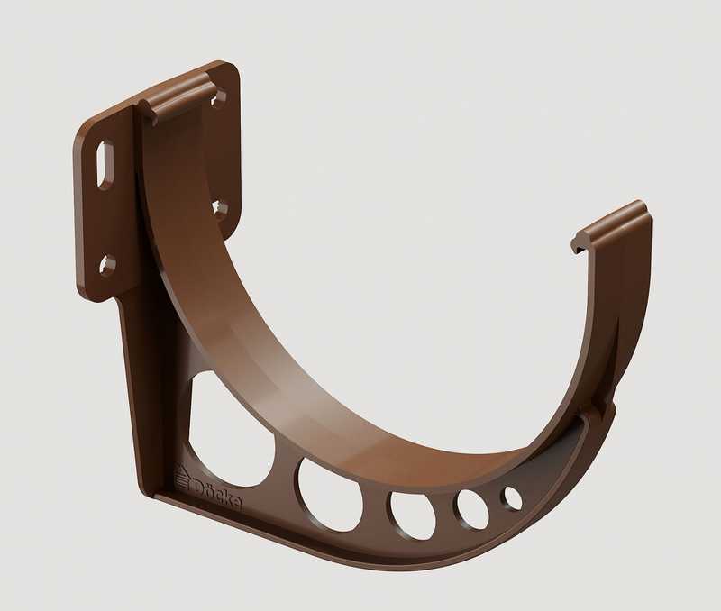 Предназначен для крепления желоба на кровлях с лобовой доской, либо в комплекте с удлинителем на кровлях без лобовой доски