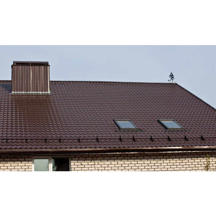 • Крыша защищена от физических повреждений, поскольку в основе указанного материала сталь 0.5 мм (с учётом металла, оцинковки и декоративно-защитного слоя).