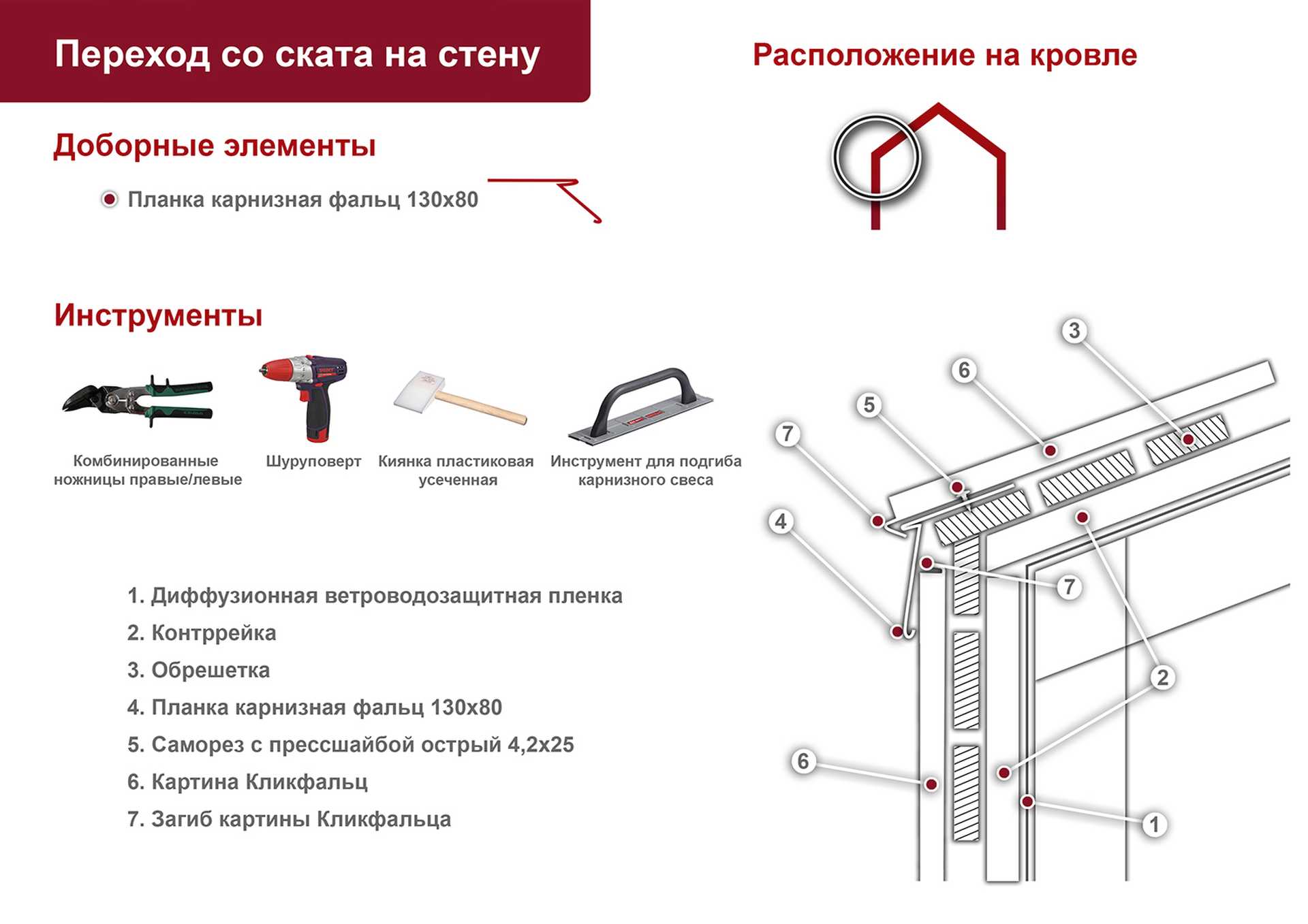 Карнизная планка — это продольная часть кровли, подведенная под край фальца. Но это чисто визуальное представление. На самом же деле эта часть кровли монтируется до начала монтажа фальцевой кровли.