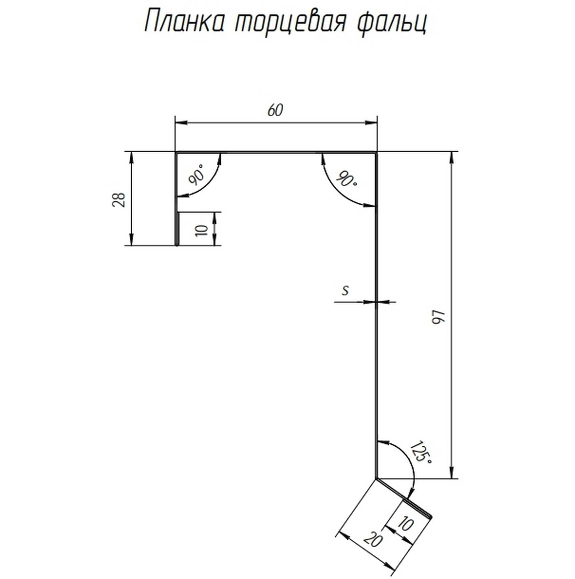 Планка торцевая фальц 60х97 0,45 Drap RAL 7016 антрацитово-серый