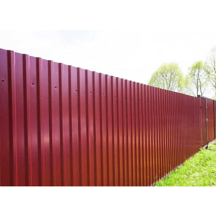 Профилированный лист МП-20x1100-A NormanMP (ПЭ-01-3005-0,5) — популярный материал в Санкт-Петербурге для монтажа забора. Изначально он представляет собой металлический оцинкованный лист с покрытием. Общая толщина металла с оцинковкой и декоративно-защитным покрытием — 0.5 мм. Проходя процедуру холодного проката, металл принимает волнообразный вид. Такая конфигурация придает профилю жёсткость.