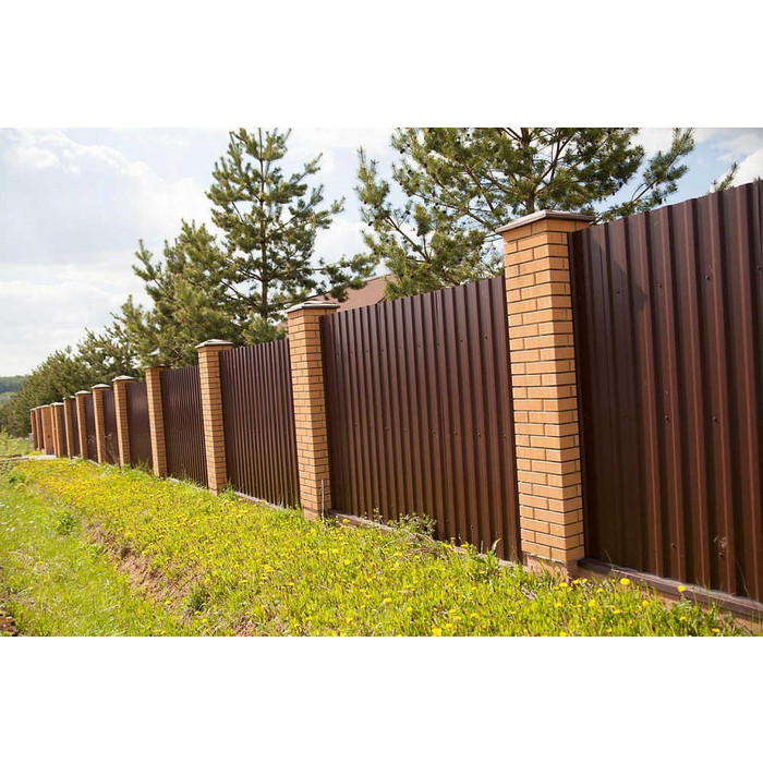 Профилированный лист представляет собой холоднокатаные стальные листы, обработанные декоративно-защитным покрытием Викинг Е. Это облицовочный материал, использующийся для отделки забора (особенно в стиле хай-тек). Профилированный лист МП-20x1100-A (VikingMP E-20-8017-0,5) популярен в Обнинске, так как он недорогой и практичный. При покупке профлиста обращайте внимание на рельеф: чем более он усилен, тем прочнее материал.