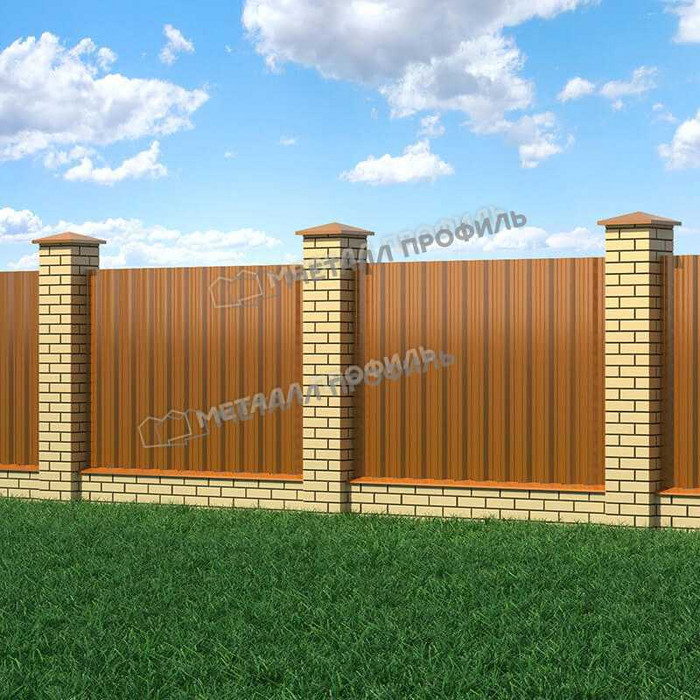 Профилированный лист НС-35x1000-B (AGNETA_Д-20-Copper-0,5) — популярный материал в Санкт-Петербурге для обустройства забора. Изначально он представляет собой лист оцинкованной стали с покрытием. Общая толщина стальной основы с цинковым и декоративно-защитным покрытием — 0.5 мм.После проката на специальном оборудовании металл приобретает рисунок из повторяющихся волн. Такая форма придает профилю жёсткость.