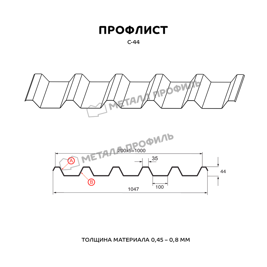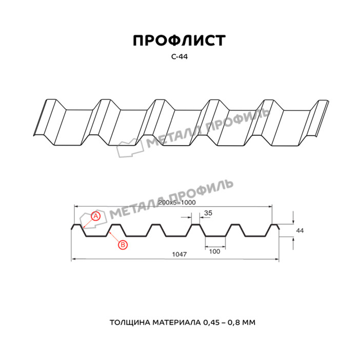Наиболее рельефный профиль серии С в линейке Компании Металл Профиль. Данная пометка означает «стеновой», впрочем разделение профнастила по области применения довольно формально. С-44 используется как в индустриальном, так и в частном строительстве. Волна этого профиля имеет глубину 44 мм, толщина стальной основы 0,45-0,8 мм. С-44 обладает отличной стабильностью и улучшенной прочностью. в сооружениях, которые подвергаются влиянию высоких нагрузок. Например: несъёмная опалубка, бытовки, гаражи, торговые точки, ограждения для частных территорий, промышленных зон и стройплощадок, кровли скатных крыш. Профлист С-44 характеризуется устойчивостью к образованию коррозии, к влиянию агрессивной среды, погодным факторам. Ещё один его несомненный плюс – высокая прочность и небольшой вес. Также он легко и быстро монтируется. Продолжительность службы С-44 может длиться до 50 лет, в соответствии с гарантийным сроком выбранного покрытия. Декоративный слой создаёт стальной основе элегантный вид и дополнительные параметры.