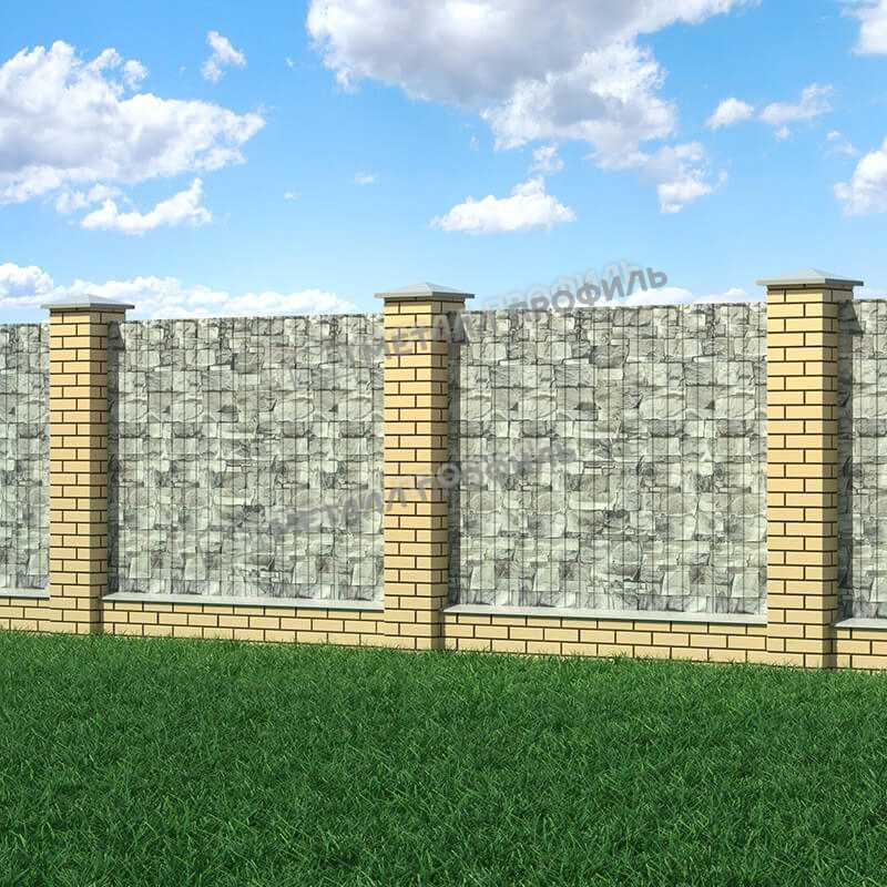Профилированный лист С-8x1150-B (ECOSTEEL-01-БелыйКамень-0,5) — популярный материал в Санкт-Петербурге для оформления забора. Представляет собой стальной оцинкованный лист с покрытием. Толщина стальной основы с оцинковкой и защитно-декоративным покрытием — 0.5 мм.После проката на специальном оборудовании металл приобретает рисунок из повторяющихся волн. Несущая способность такого листа на порядок выше плоского.