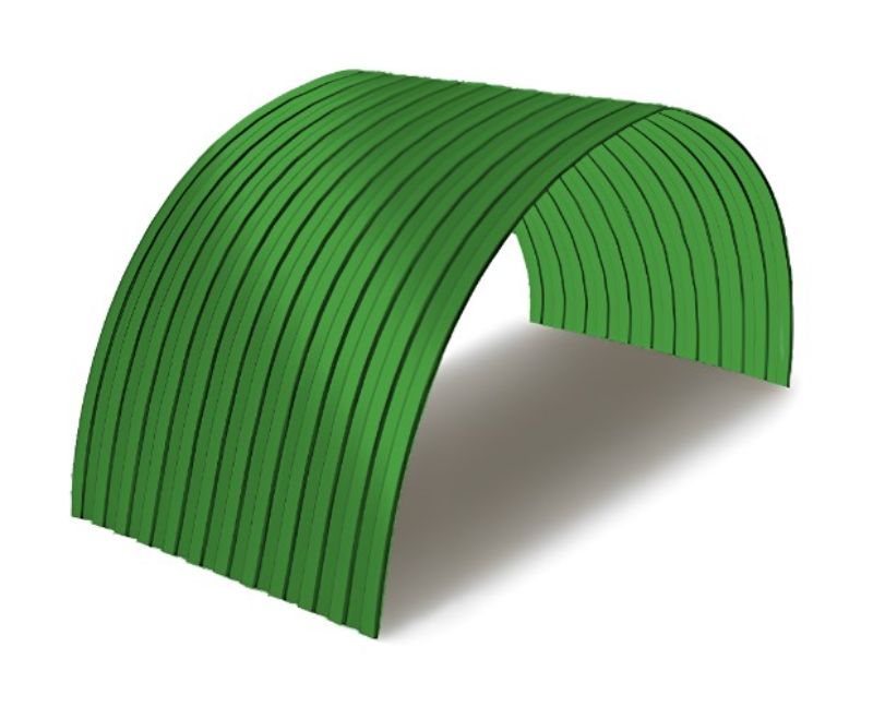 Арочный профилированный лист является очень гибким материалом, имеющим цинковое покрытие. Чаще все используют его для перекрытий зданий округлой формы, которые не имеют никаких углов