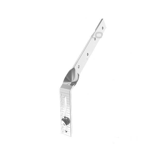 Боковой удлинитель используется в паре с универсальным крюком при установке на боковую (торцевую) часть стропила.На вертикальной части удлинителя есть шкала со значениями для точной установки крюков по линии уклона желоба.Удлинитель поставляется в комплекте с болтом с шестиганной головкой.